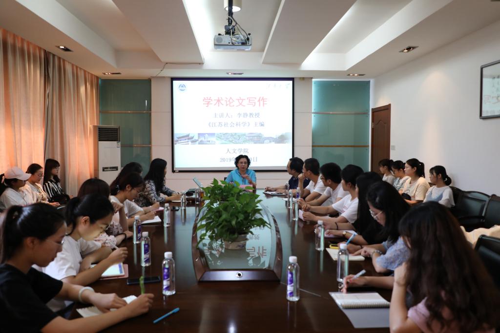 2019年9月10日下午, 江苏省哲学社会科学联合会秘书长、《江苏社会科学》杂志主编李静教授应邀来到av麻豆-国产麻豆av-av视频 ,在田207会议室为教师与研究生做了题为“学术论文写作”的讲座。讲座由av麻豆副院长杨晖教授主持。在报告会上,李静教授首先介绍了全国社科期刊的基本情况及其分类,解读了CSSCI与中文核心期刊的区别,强调学术性论文与评论性论文的差异;其次,从论文标题的学术性、研究角度、关键点等方面提出建议,对论文...