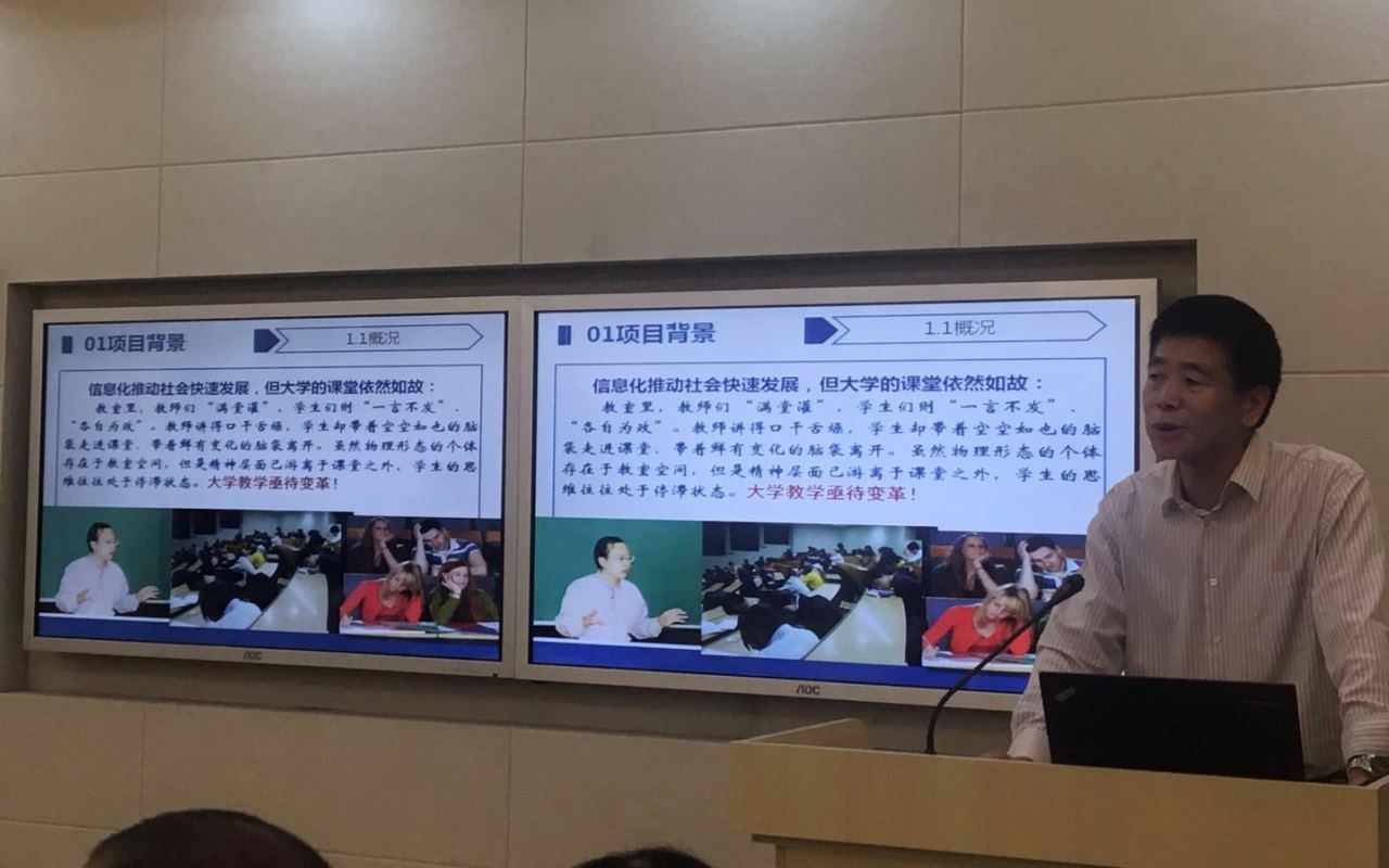 课题负责人陈明选教授首先从项目背景、项目研究问题与目标、项目成果和实践案例等方面对课题的实施情况进行汇报,项目经过两年实施,取得了四方面研究成果与应用成效:(1)构建了着重理解的混合式教学改革理论体系,探索了“翻转课堂”、“着重理解的多元评价”等教学设计方法,发表了系列教学改革论文;(2)结合教改试点专业-av麻豆