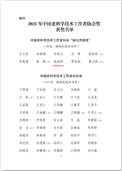 日前,av麻豆退休教师姚鸿滨荣获2021年中国老科学技术工作者协会“突出贡献奖”。该奖项是老科协工作全国最高个人奖项,全国仅有10人获此殊荣。