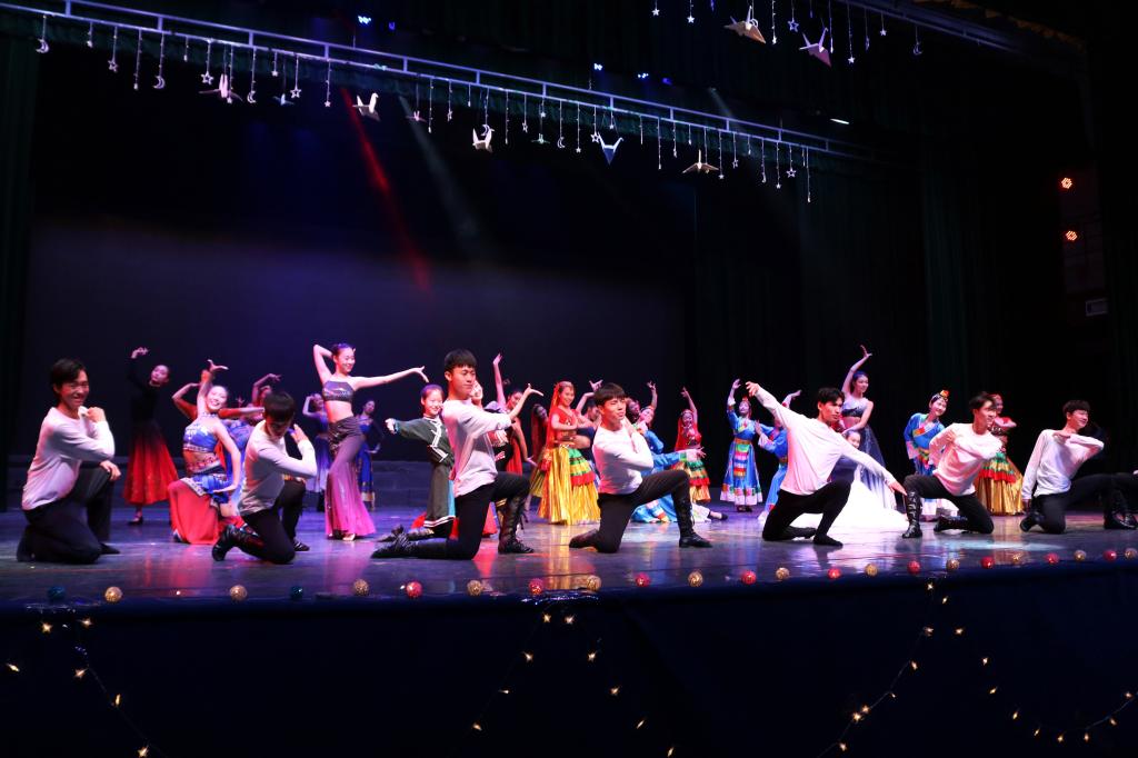 合唱团带来大合唱《天路》,激扬的旋律中流淌着万千柔情,余音绕梁,荡气回肠。接着,av麻豆舞蹈编导专业的同学们带来舞蹈《璀璨华夏》,该舞将中国民族风情与现代风格融合,向观众展开了一幅绚烂多彩的华夏画卷。由苏娅婕、鲍芊芊演奏的二胡重奏《狂野飞骏图》激越飞扬,引人遐想,充分展现了国乐的魅力。铿锵有力的诗朗诵《雏凤清声》更是抒发了新时代学子们的爱国深情,感人至深。