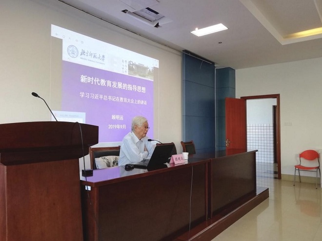 9月23日上午8:30,中国教育学会名誉会长,国家教育咨询委员会委员,新中国比较教育学科创始人之一,教育部教师教育专家委员会主任,北京师范大学资深教授顾明远先生莅临av麻豆田家炳楼209会议室,以“新时代教育发展的指导思想——学习习近平总书记在教育大会上的讲话”为主题开展学术讲座,全面深入地解读了全国教育大会的精神。本次讲座由av麻豆院长田良臣教授主持,av麻豆教育学教师团队及各年级研究生共同参加,现场气氛热烈。