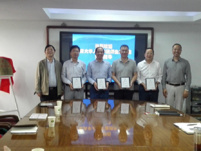 分别向陈江辉、赵宪宇、龚雷宇、包智强四位同志颁发了校外研究生导师的聘书。
