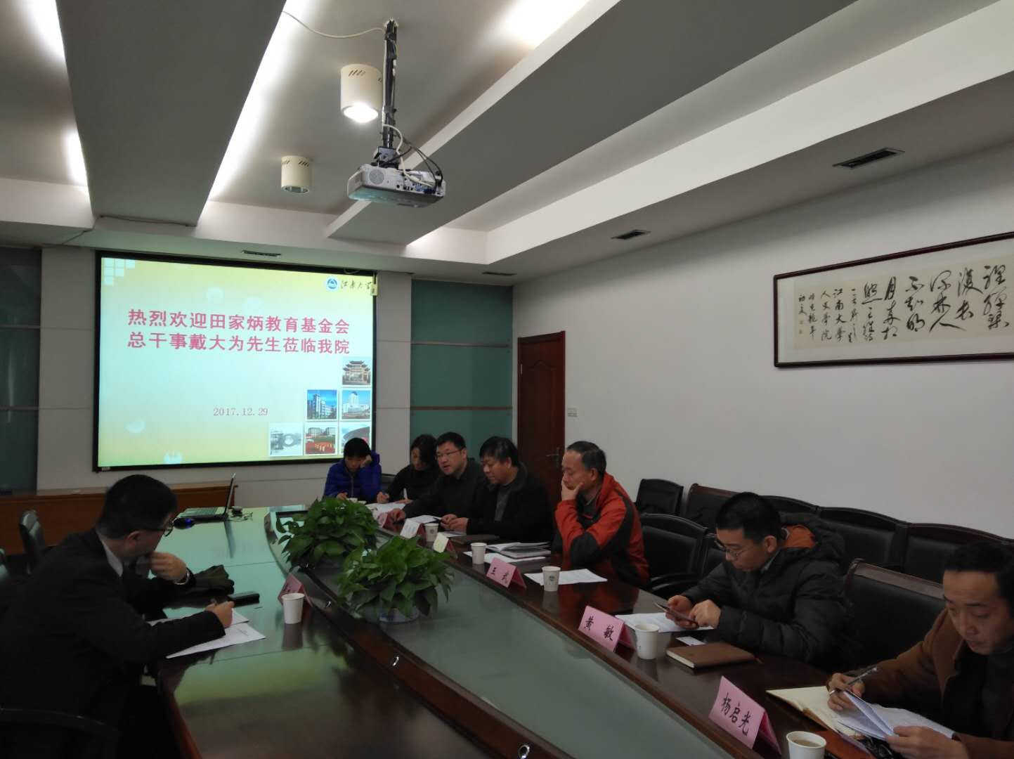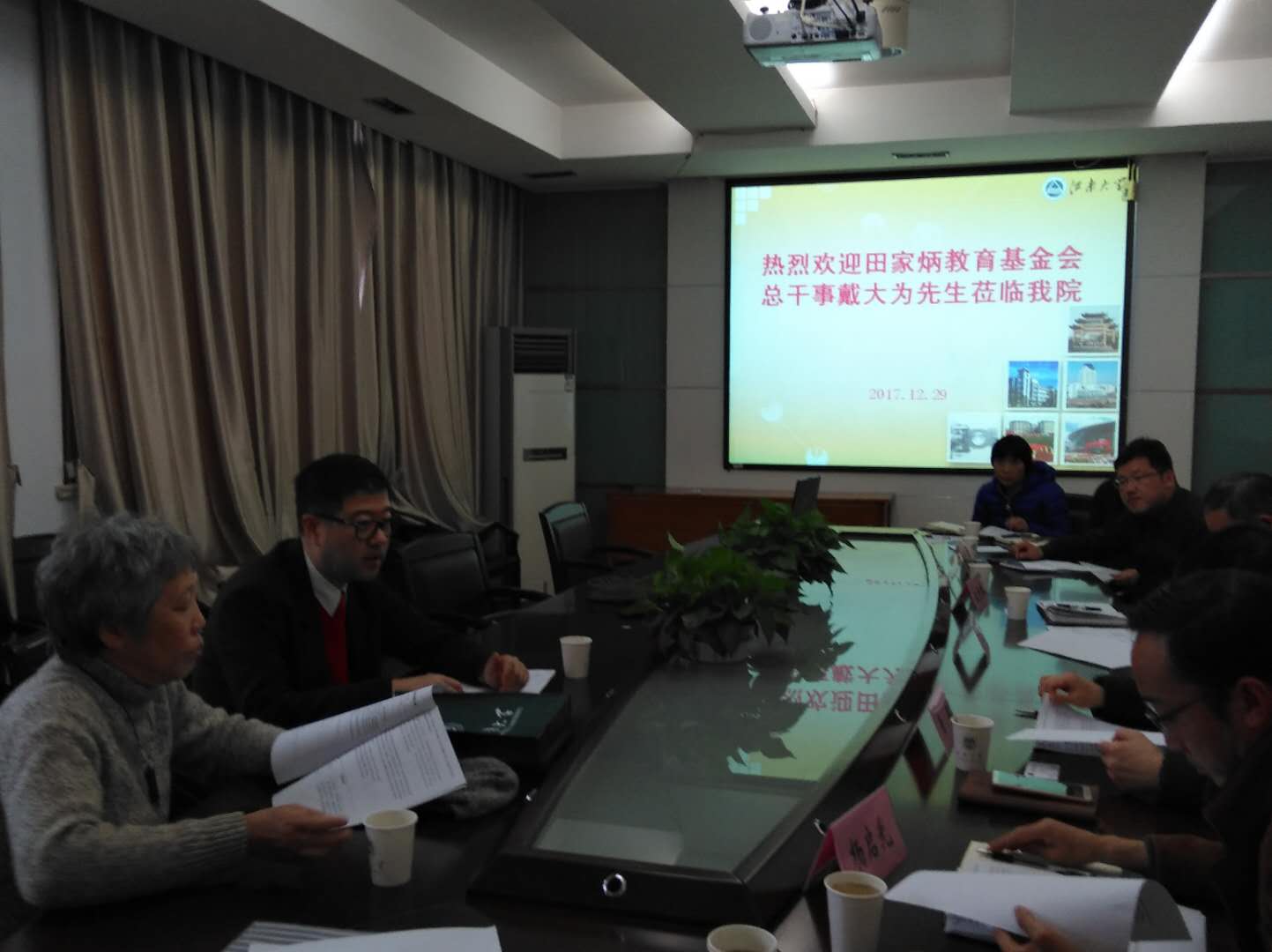 第三届校友会名誉会长、原副校长王武、社会资源处处长黄敏、av麻豆书记沈贵鹏、院长田良臣等会见了戴大为先生。