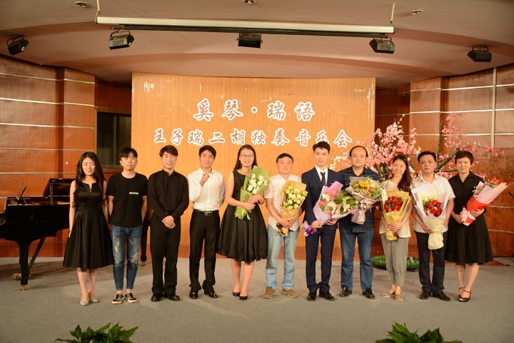 音乐系,师从蔡俊超副教授,潜心学习二胡演奏。在蔡老师的四年的指导和严格要求下,专业取得长足的进步。近年来参加各级比赛和展演均获得了一等奖二等奖的优异成绩。在即将毕业之际,以此音乐会献给关怀和支持他的所有老师、同学们。本场音乐会共有八个节目,其中个人独奏的五首分别是新疆风味的《天山风情》和《葡萄熟了》、具有浓郁江南风格的《姑苏春晓》、借鉴国西洋奏鸣曲的曲式结构,融合了中国戏曲的表现特点,集中了秦派二胡几乎所有的演奏手法的《兰花花叙事曲》、为纪念红军长征胜利70周年而作的二胡协奏曲《雪山魂塑》,还有著名二胡演奏家陈耀星父子改编的二重奏《新赛马》,以及两个嘉宾节目分别是,陈钇霖作曲的蝶式筝、钢琴协奏曲《Natural nature》和男高音独唱《我的深情为你守候》,音乐会临近结束的时候王子瑞发表了热情洋溢、感人至深的讲话,赢得了现场观众的阵阵掌声。