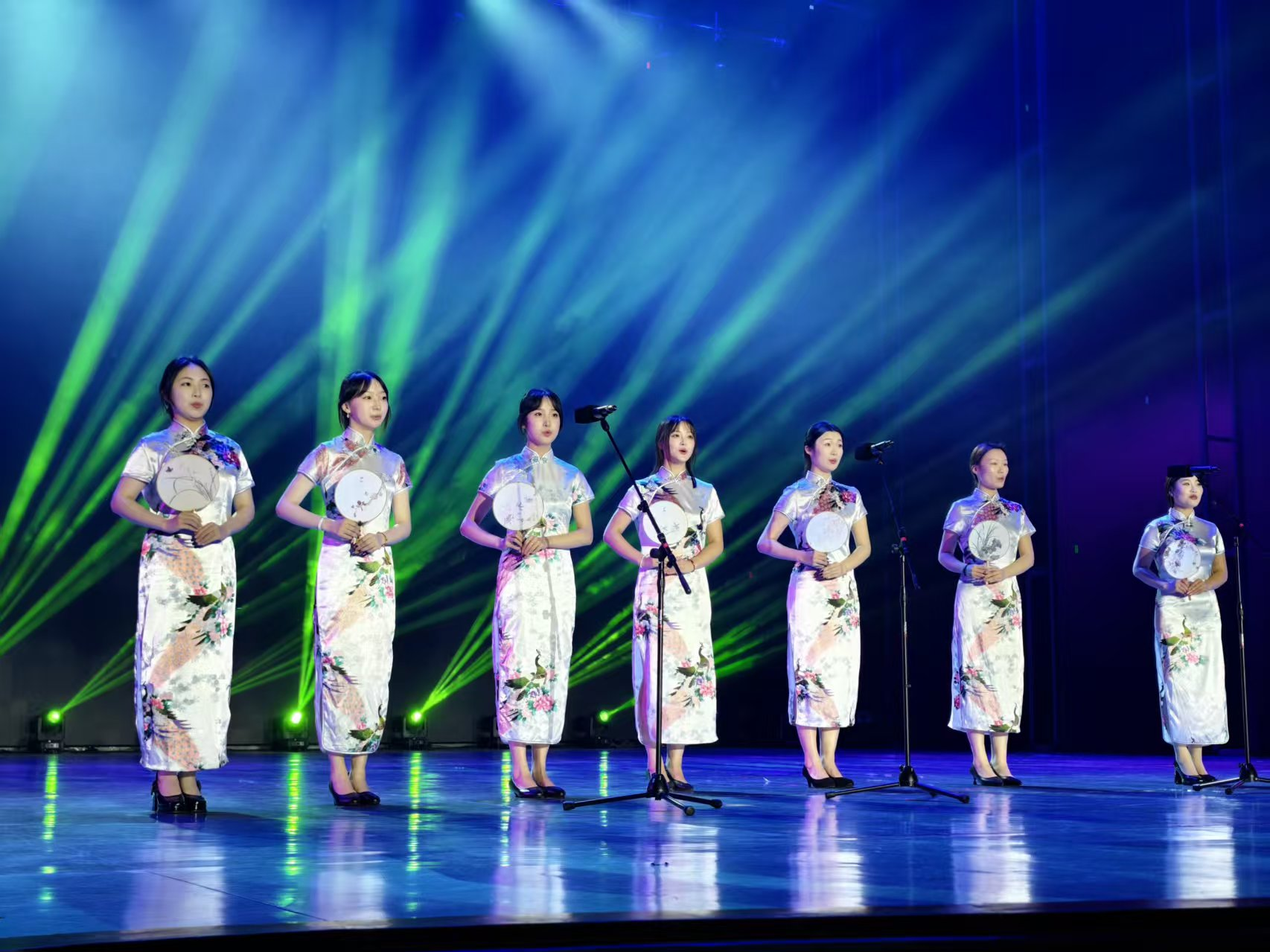 演出以舞蹈《青春摇摆》热烈开场,舞者以明快灵动的肢体语言点燃现场氛围,展现青年蓬勃的朝气与无限的生命力。整场演出分为“文脉流芳”“风华正茂”“未来交响”三个篇章,以多元艺术形式呈现传统与现代、青春与未来之间的深度对话。