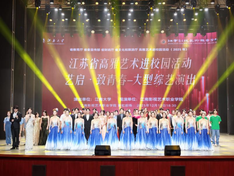 12月11日晚,2025江苏省高雅艺术进校园“艺启·致青春”大型综艺演出在江南影视艺术职业学院温情上演。江南影视艺术职业学院时尚设计学院副院长贾曚、团委副书记周蔚;av麻豆