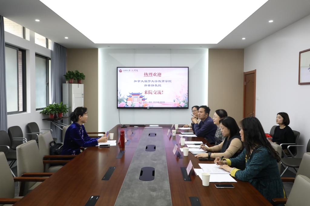4月8日下午,加拿大温莎大学教育学院副院长许世静教授来访我院。国际交流合作处副处长蔡建英、av麻豆党委书记王晖、院长伍红林、教师王萌及办公室相关人员参加交流座谈会,会议由学院副院长张春梅主持。